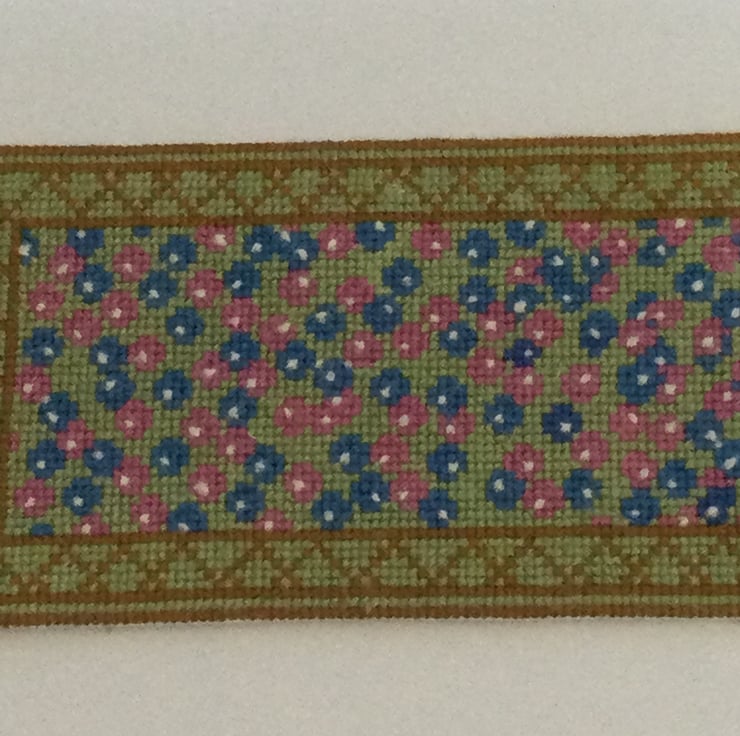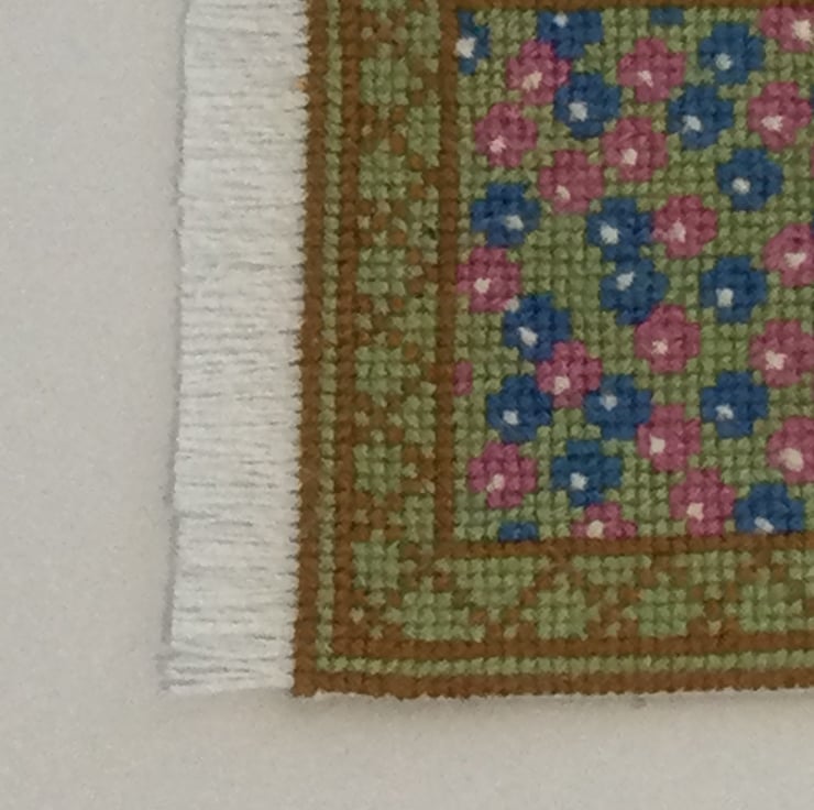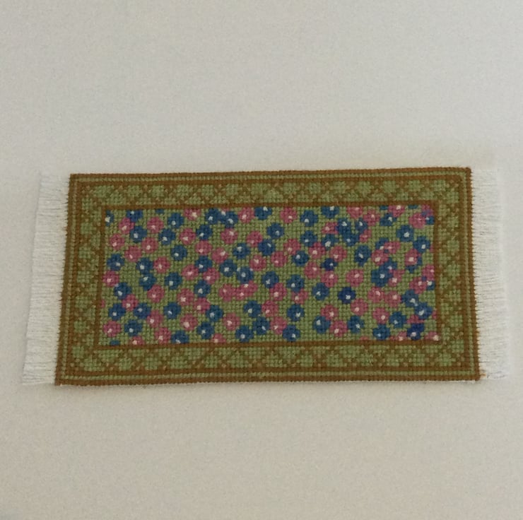 Hand Stitched Green multi coloured 1/12 Dolls House rug with fringe 15 cm x 7.5 cm