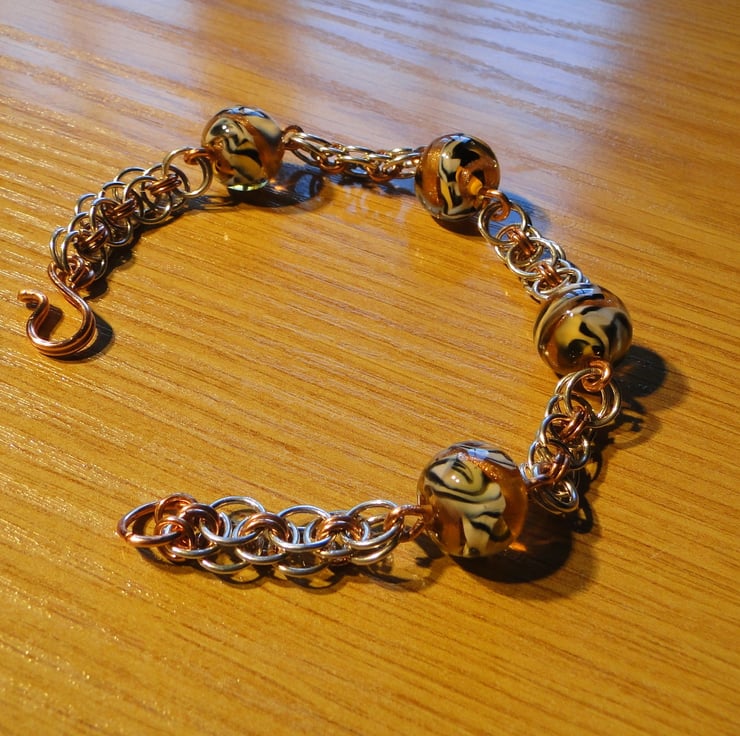 The beads are spectacular and I enjoy making chainmaille bracelets. copper and silver go well together with the colour of the beads