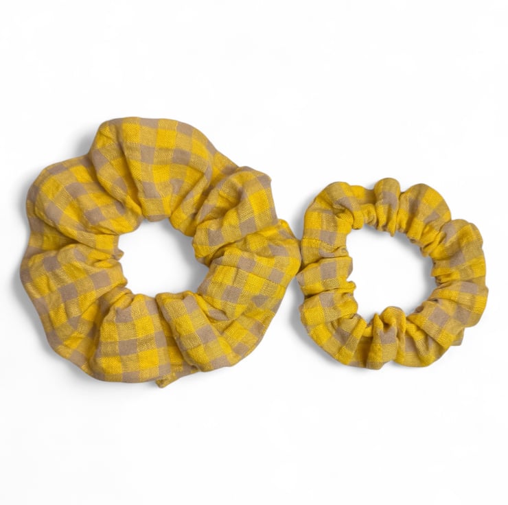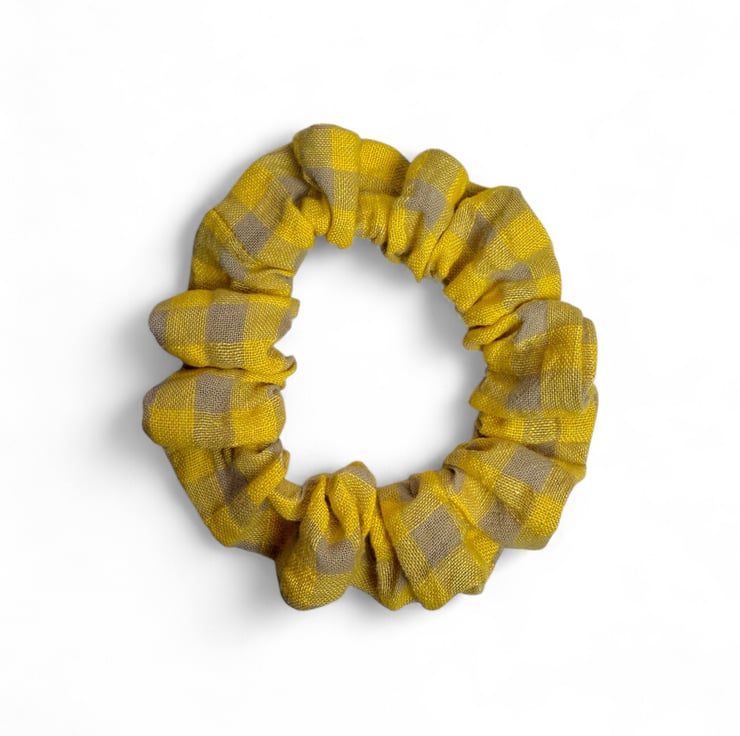 Yellow Gingham Linen Scrunchie - Regular