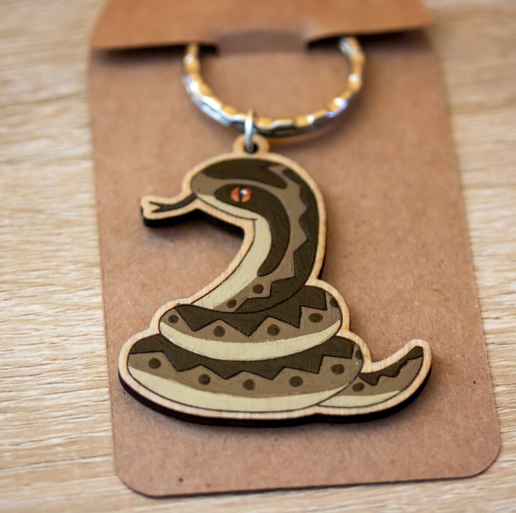 Hand-Painted Wooden Adder Keyring – British Wildlife Gift