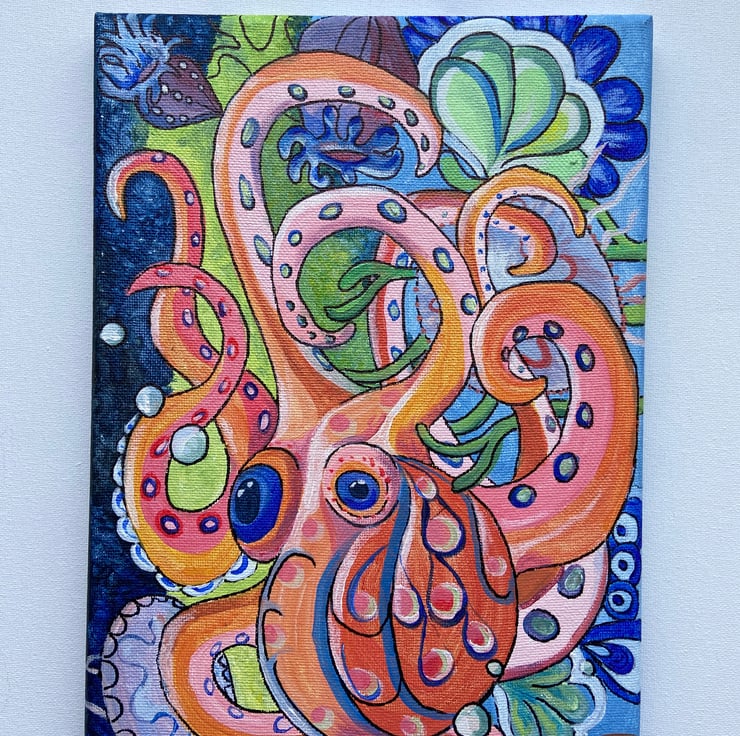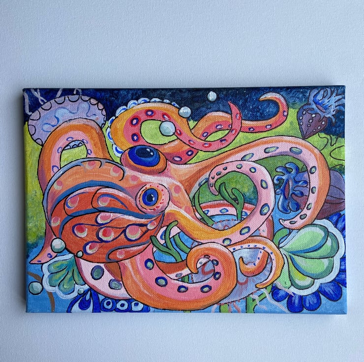 Abstract original acrylic painting inspired by marine life.