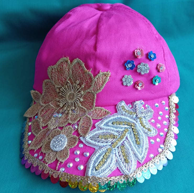 Pink Embellished Bling Baseball Cap Unique Summer Festival Wear