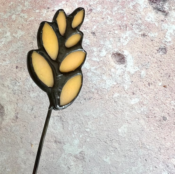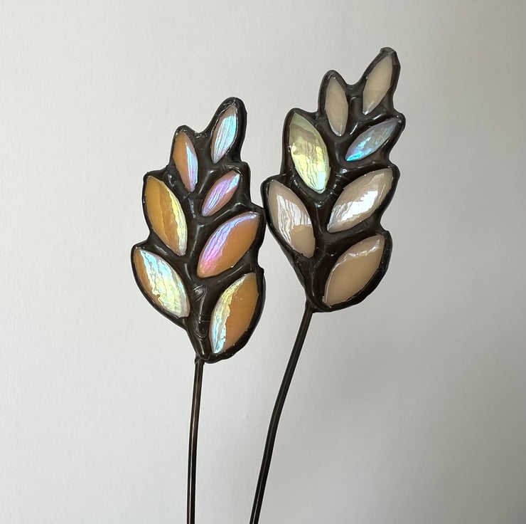 A unique and beautifully made glass wheat stalk in either amber or cream iridescent glass.