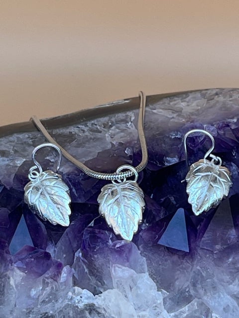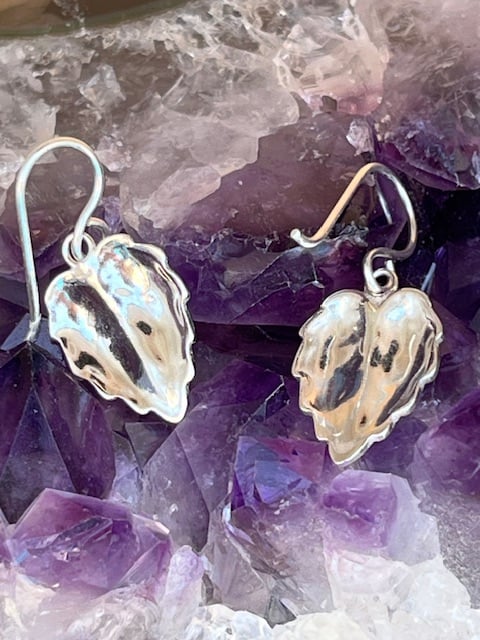 This sterling leaf earrings were hand created by me using an impression die in a press, which gives them the amazing detail. The silver weight of each earring is 1.7 grams.