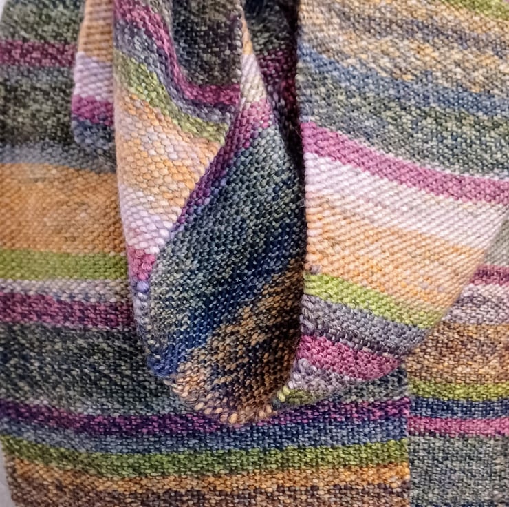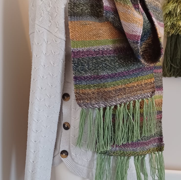 I love weaving, it is a slow, mediative process and knowing that the end products can be worn with pleasure for the comfort and warmth they provide, as well as enjoyed for their beautiful colours, brings me great satisfaction. Some of my scarves are 100% acrylic because many people can't wear wool, but there are other scarves listed that are part acrylic, part wool, so do browse all of my products before you decide. This scarf is 70% acrylic and 30% wool. These scarves are hand woven on my Ashford loom in my studio in Suffolk. They take many hours to make compared to the manufactured alternatives and are made with great care and love.