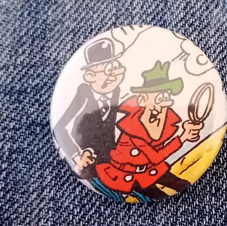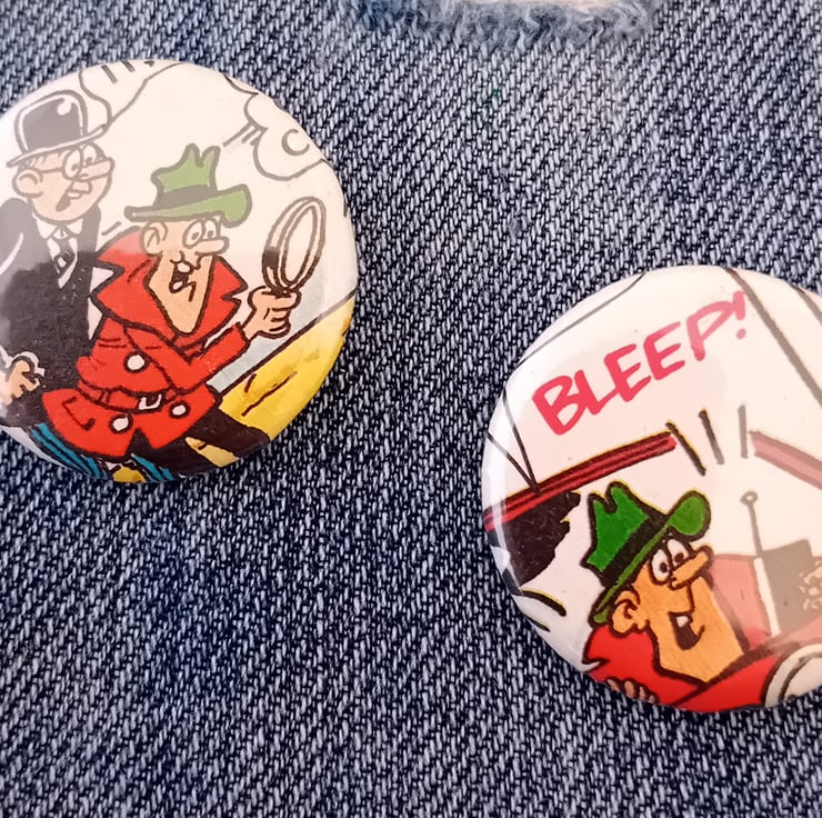 Add a splash of colour and a hit of nostalgia to your outfit with this bold badge, handcrafted from original vintage British comics! Each one is a mini work of pop-art history – no two are the same.