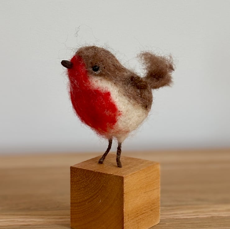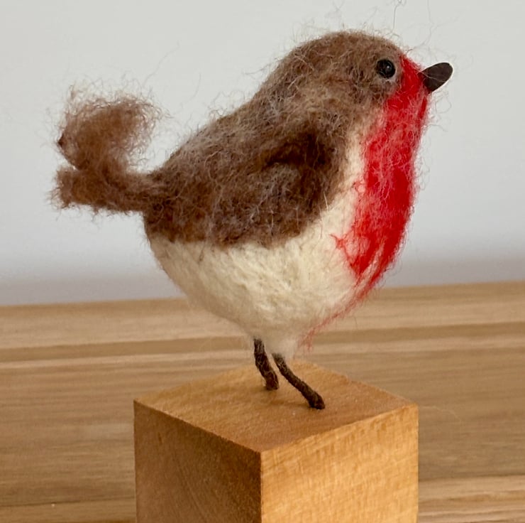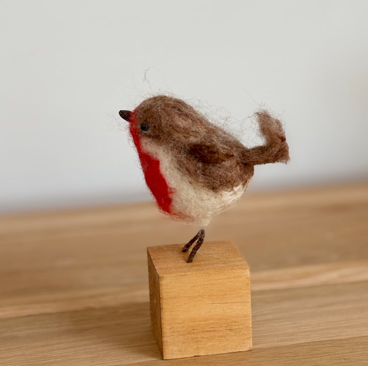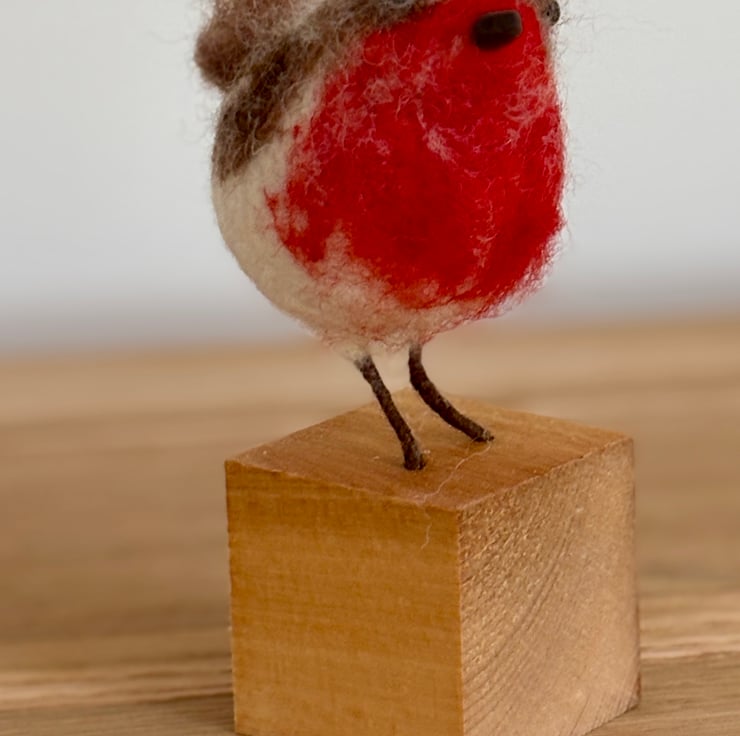 A small rotound robin, fat on worms. Made with wool, hand felted. No pattern so each one unique. Fab for any bird lover in your life as a gift, collectible. Stands 5 inches tall, 3 inches excluding the wooden mount