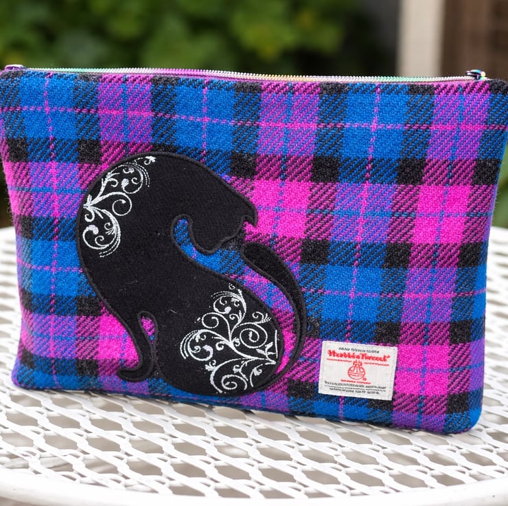 I embroidered this stunning black cat onto Harris Tweed some time ago and waited for inspiration as to what to make - today was the day!