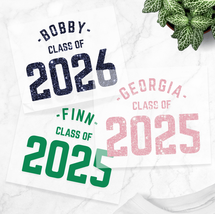 Celebrate your big milestone in style with our personalised School Leavers Iron-On Transfer! Perfect for DIY graduation t-shirts, hoodies, tote bags and more, these easy-to-apply HTV decals can be customised with any name (up to 9 characters) and any graduation year.