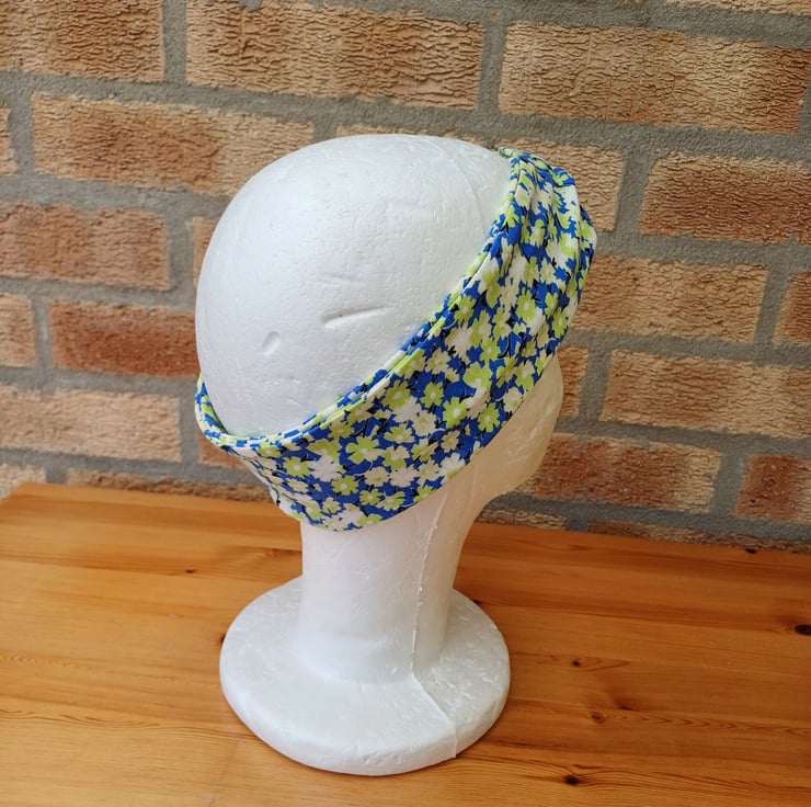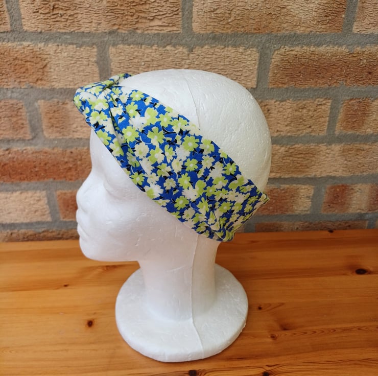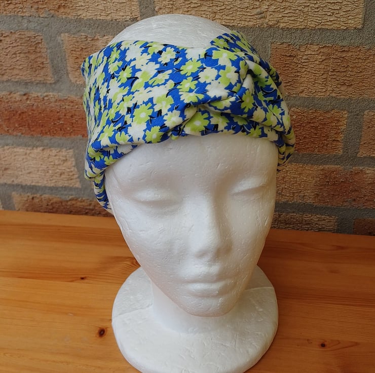 Headband green blue floral viscose jersey twist front turban hair accessories