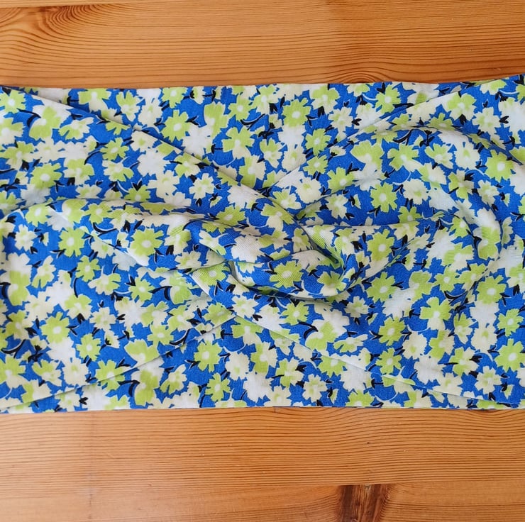 I make all of my own jersey T- shirt tops and get left with lots of small off cuts, what better way to use them up than adding a little colour to your hair with a simple yet flattering head band.