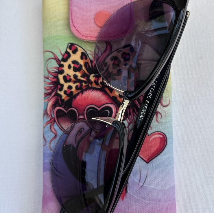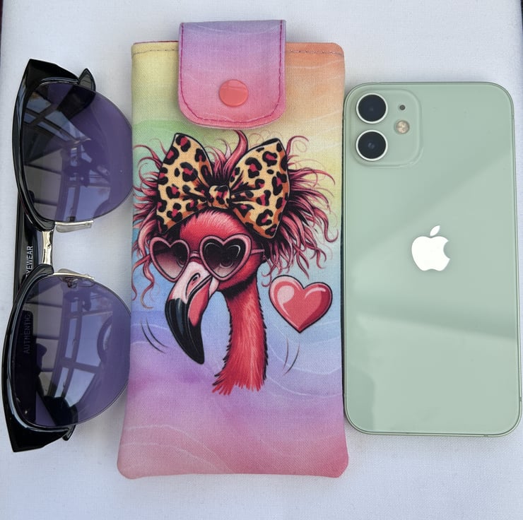 This versatile pouch is designed to accommodate either your phone or glasses. Each external case is individually printed, padded, and fully lined to ensure optimal protection. The snap closure securely keeps the contents within the pouch.