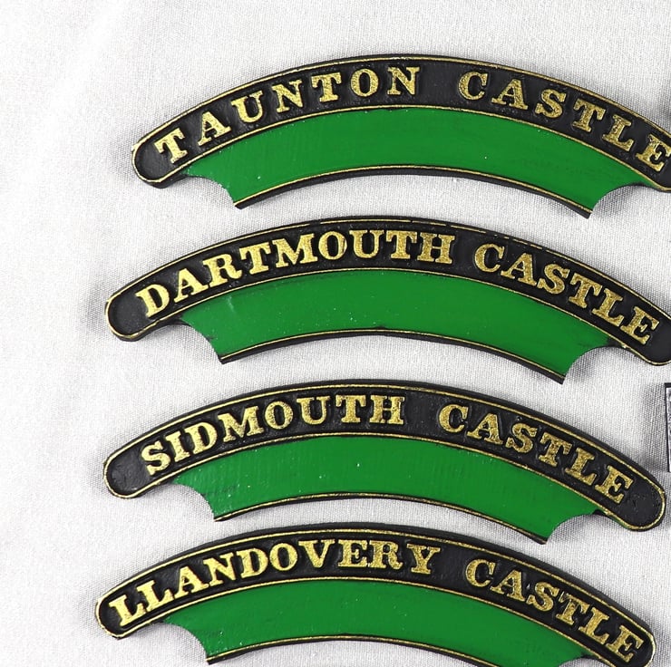 All nameplate’s are grouped in to the “Big 4 “ regions, plus B. R. and are all of 1/17th scale and now all loco nameplates are available. Simply type in the name of the nameplate you require in the custom text box. The accompanying pictures are just a sample of the complete range.