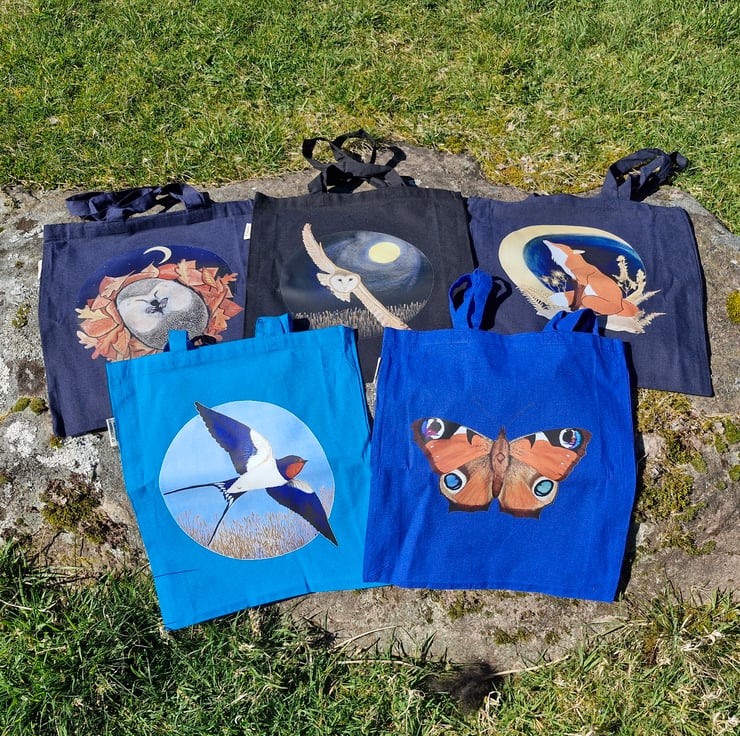 A 5oz recycled cotton bag, printed with an original artwork by Hannah MacIver.