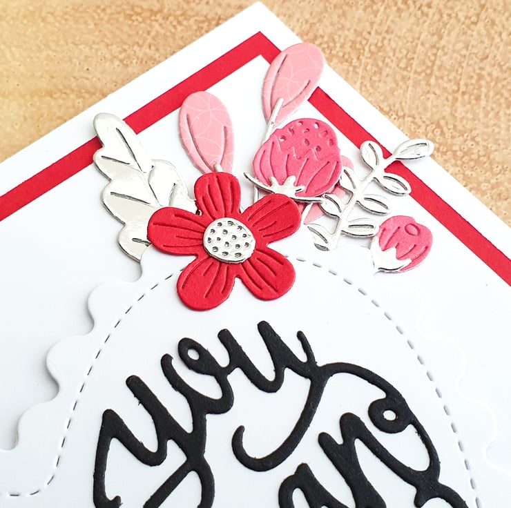 Handmade with care, this card is a unique way to tell someone "I love you" - to switch it up, frame it in a box frame and gift it as a piece of art.