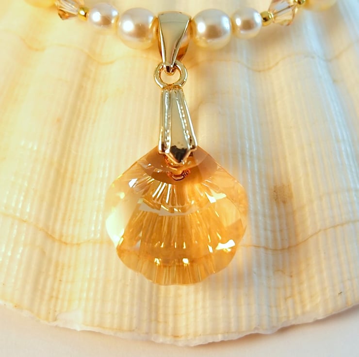 The focal point of this necklace is an 18mm beautifully sparkling top quality Austrian crystal scallop shell that shimmers in the light and hangs from a gold-plated bail.