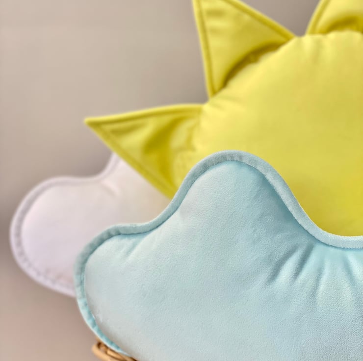 Create a serene and cozy atmosphere in your nursery with this small velvet cloud cushion, available in two dreamy colours: classic white or gentle baby blue.