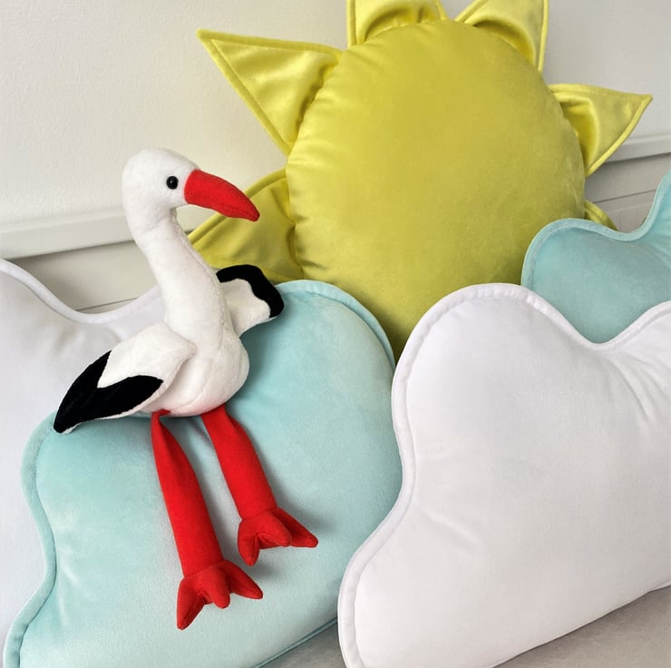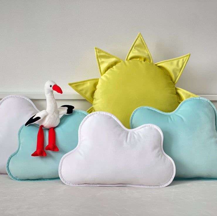 Add a touch of softness and charm to your nursery or child’s bedroom with this large velvet cloud cushion, available in elegant white or soothing baby blue.