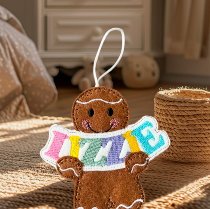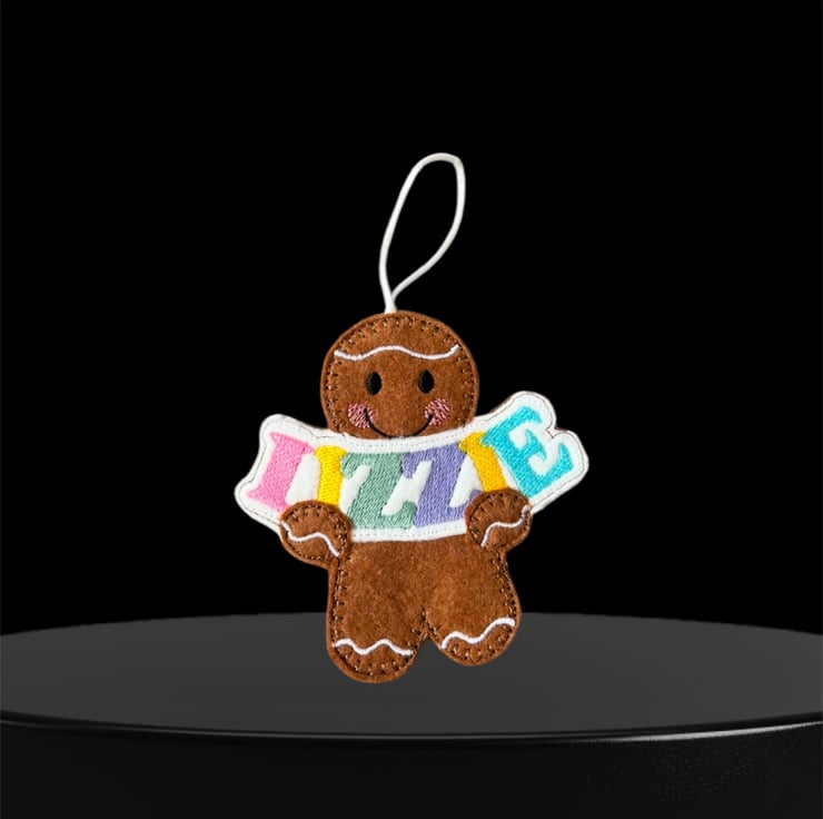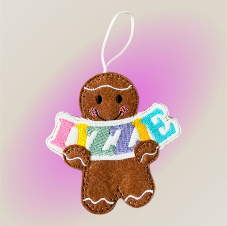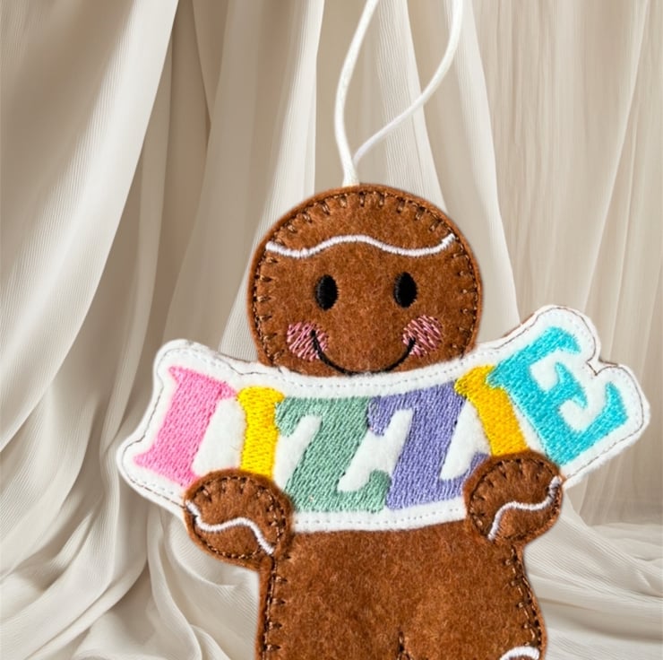 Handmade embroidered gingerbread lady.
