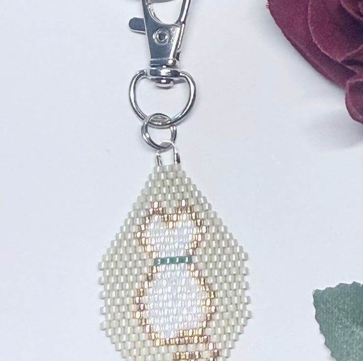 The beadwork section has been hand woven using tiny Japanese Miyuki beads in an elongated diamond shape.