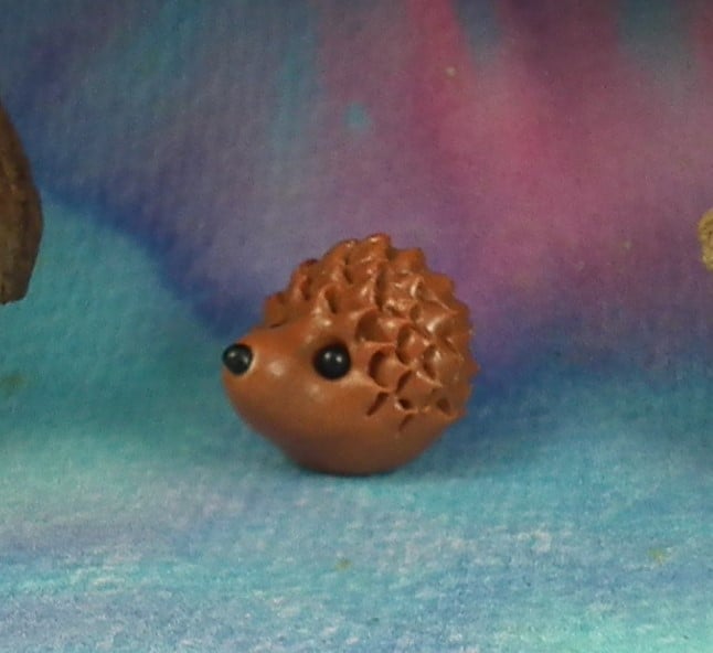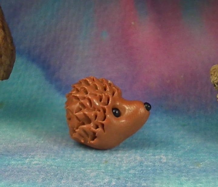 This is a 'one of a kind' creation; entirely handmade without the use of moulds here at my studio on the Sussex Coast. Modelled with Prosculpt polymers, painted with heat set paints before sealing with lacquer, Hasket has sparkling black onyx eyes and is one inch long.