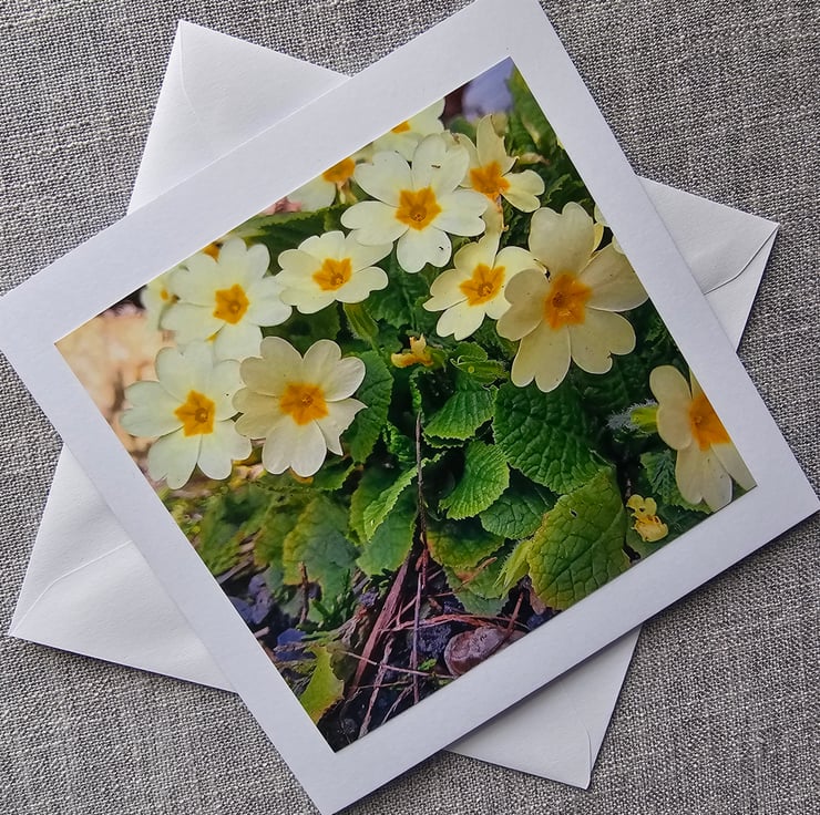 This year (Spring 2025), the pale yellow native primroses have been looking particularly gorgeous out and about. This photo was taken in my garden in North Wales. This card is suitable for any occasion like GET WELL, a THANK YOU note or just a THINKING OF YOU card.