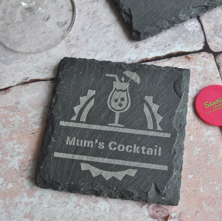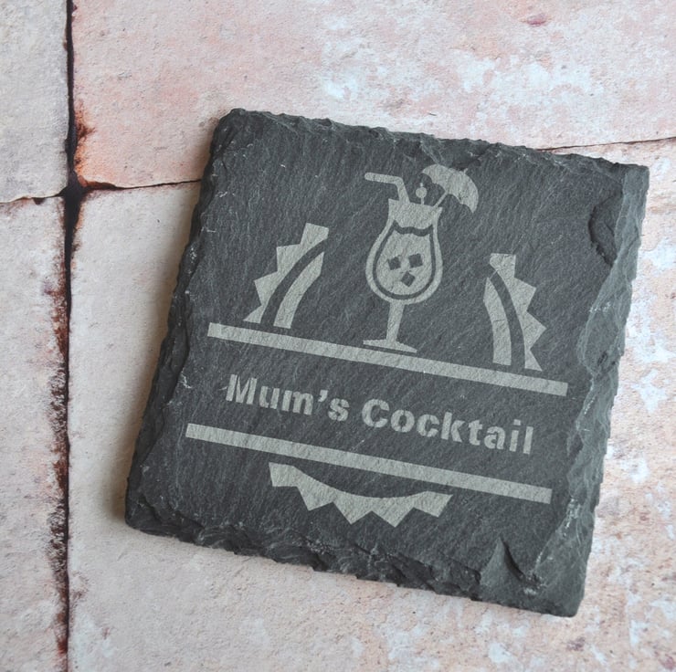 Personalised slate coaster with a quirky cocktail design. A unique gift for anyone who likes a cocktail!