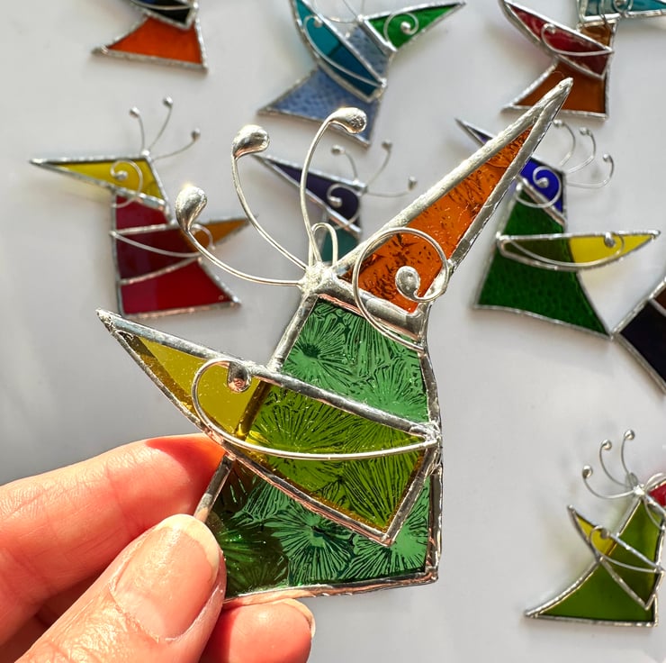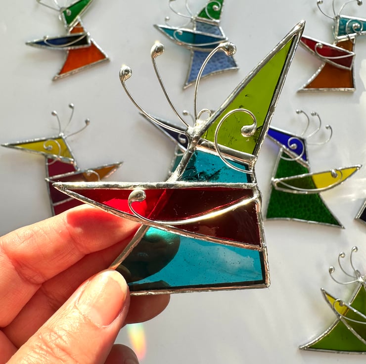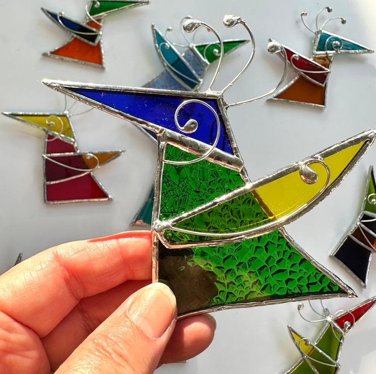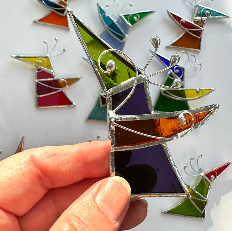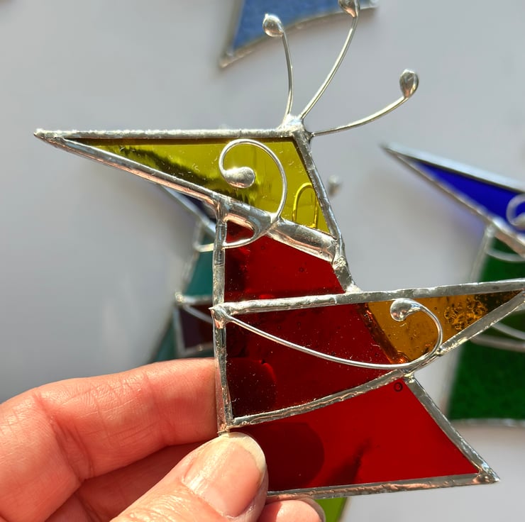 Kookie bird suncatcher made from stained glass by Carole’s Glass.