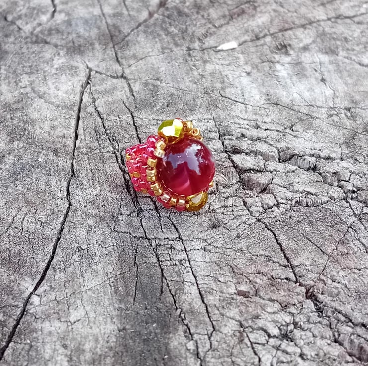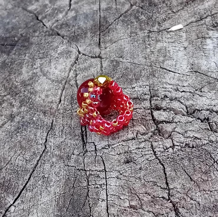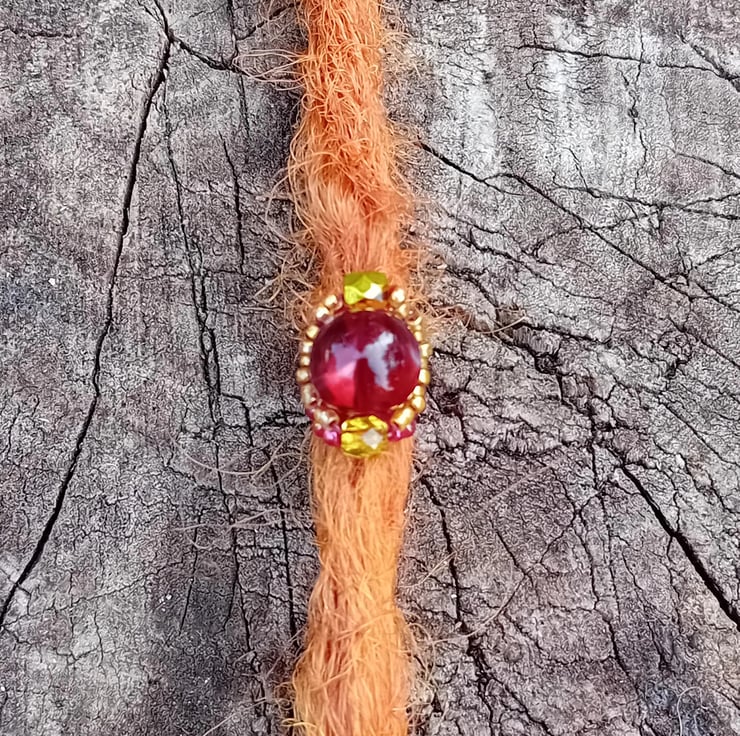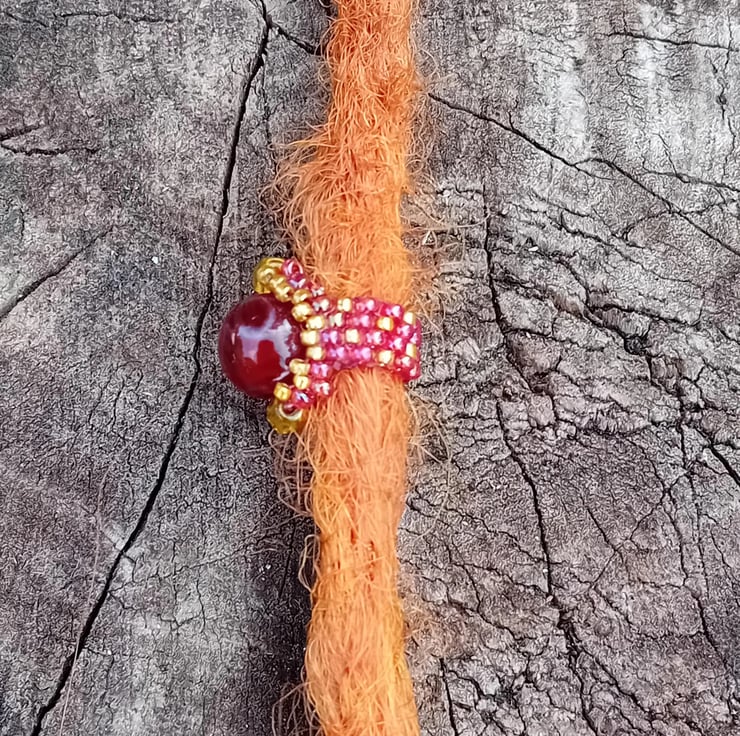 Regal red and gold bezelled bead dreadlock bead - a marbled effect red bead encased in gold and red beads with gold faceted beads.