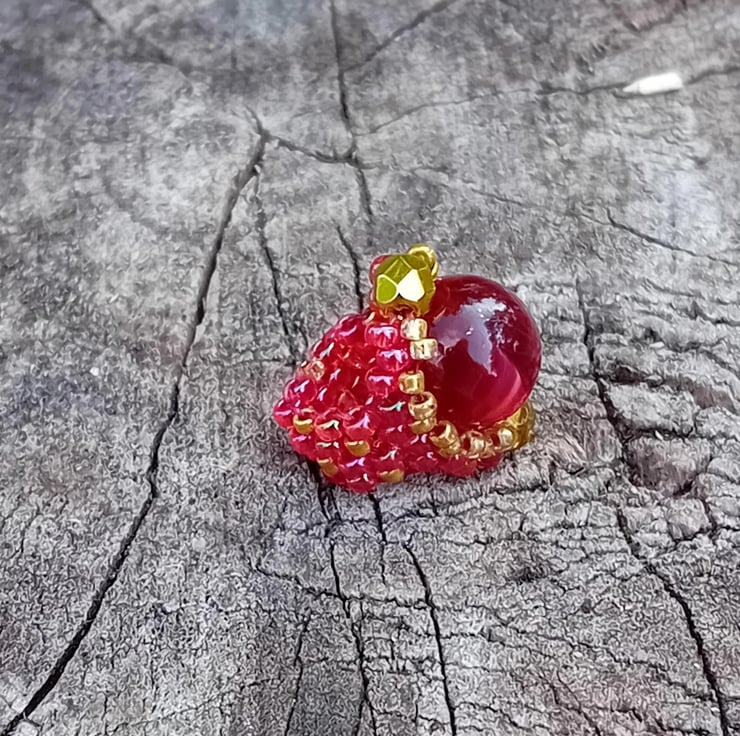 - Made with locally-sourced shimmering brick red seed beads and gold seed beads