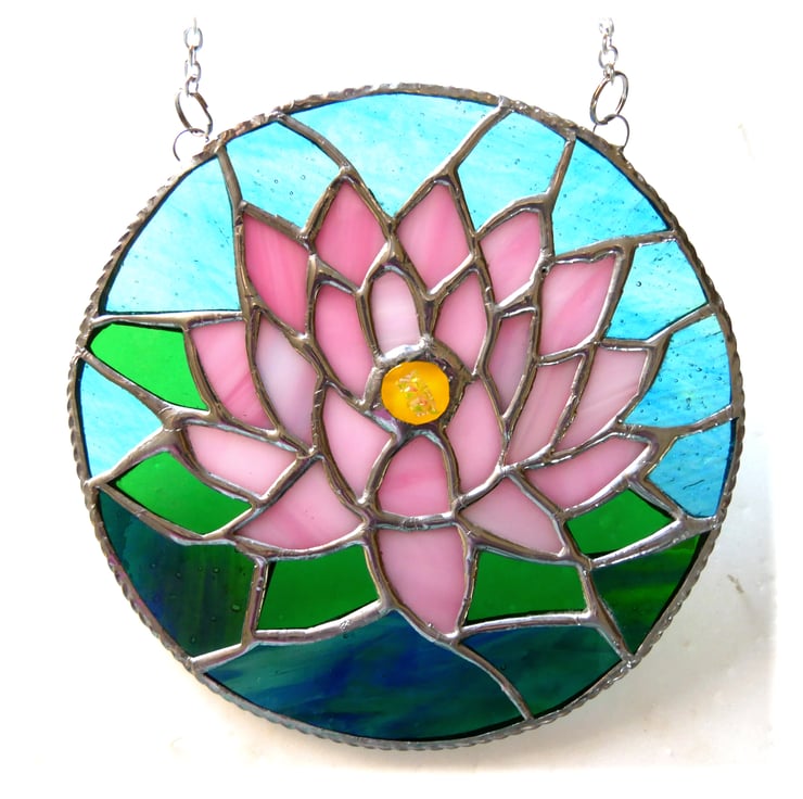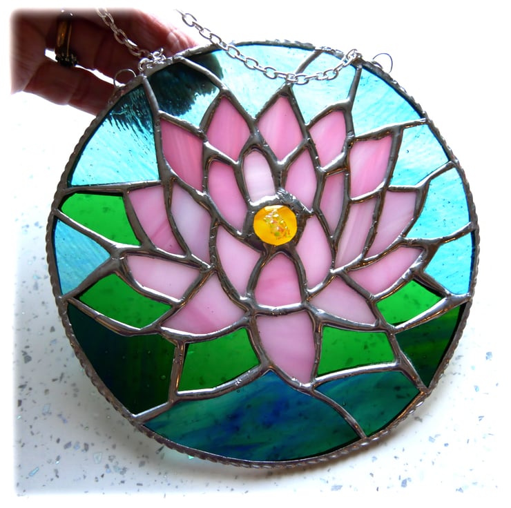 SOLD 250810 Waterlily Suncatcher Stained Glass 015 Pink