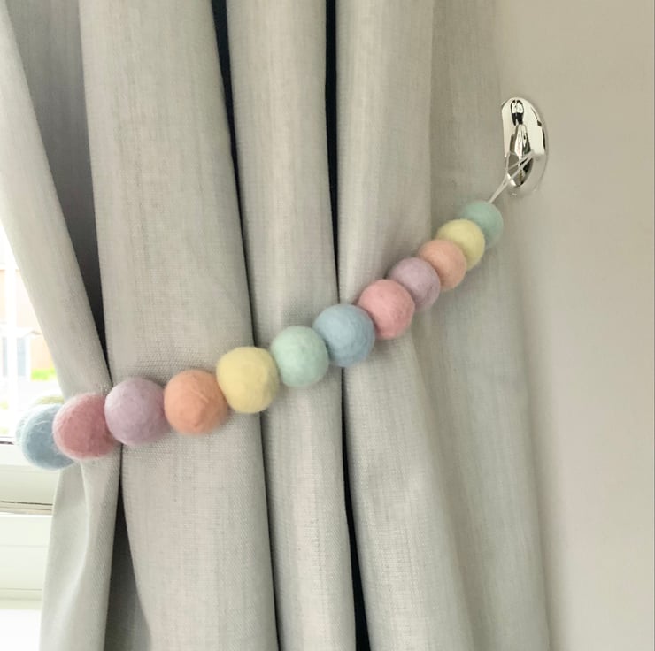 The gorgeous pom pom tie backs will make a great addition to a nursery or bedroom, they look great whilst keeping your curtains tidy