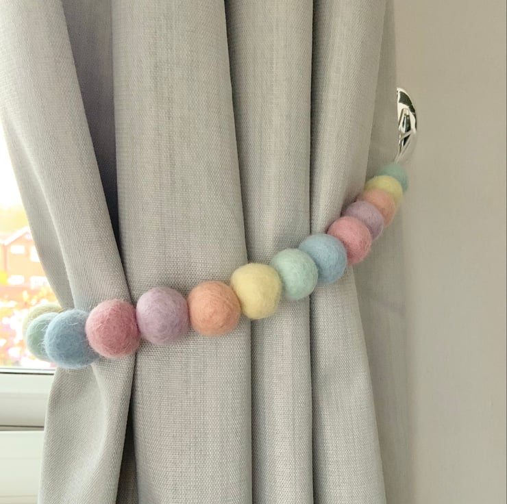 Pastel Rainbow felt ball curtain tie backs