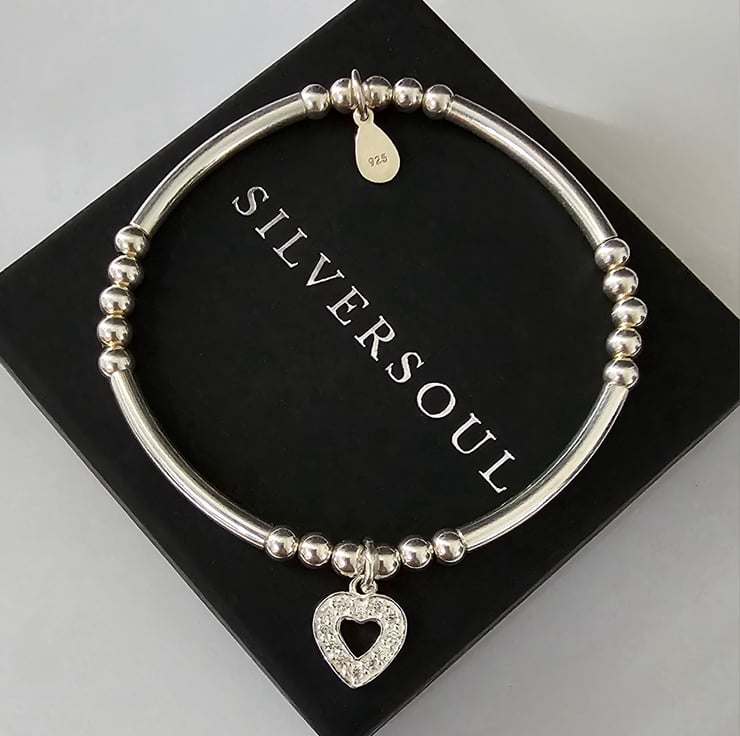 Sterling Silver Cubic Zirconia Open Heart charm stretch bracelet, made with good quality materials. This bracelet is truly a beautiful piece to own and one for your jewellery collection. Or makes a fantastic gift for someone truly special. With a lovely sparkly open heart charm that makes it extra special.