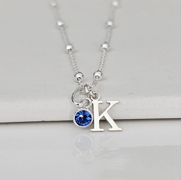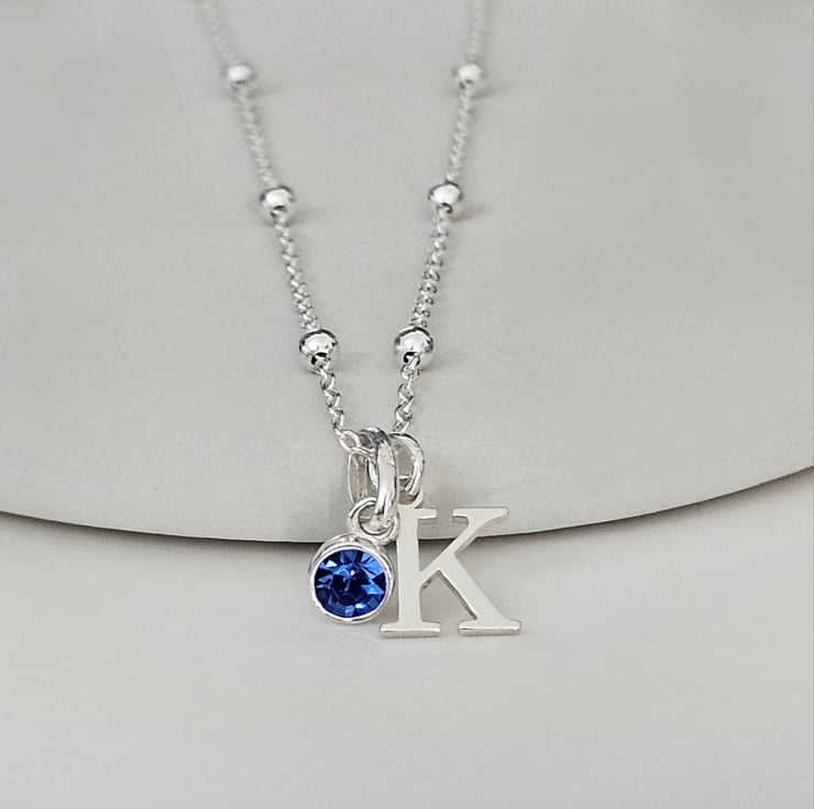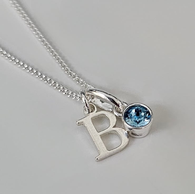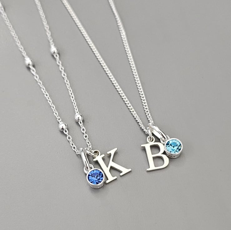 Made with -9mm- initial charm & -4mm- Swarovski crystal birthstone. With a choice of either a Sterling silver curb Chain or Sterling silver Satellite chain.
