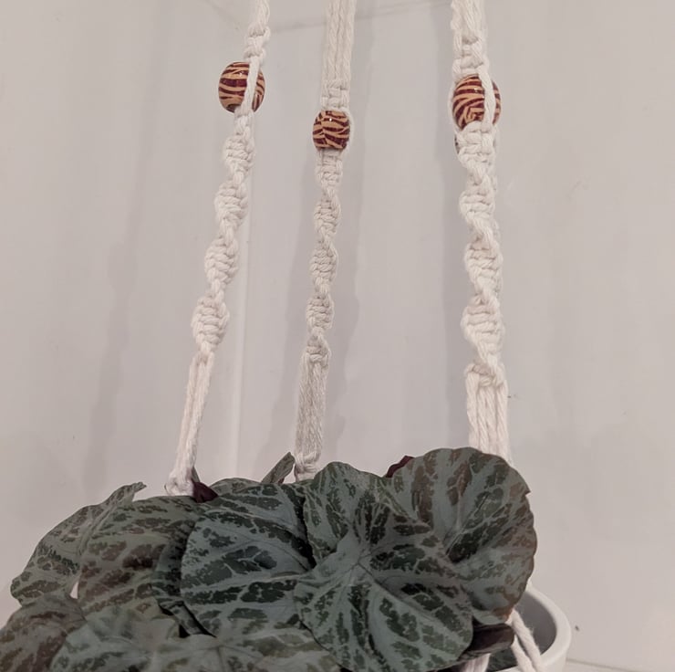 Bring the outside indoors with this macrame hanger which has been hand knotted from 100% cotton cord and hangs to an approximate height of 104 cm. It comes with the plant pot but the plant is not included! If you prefer a bolder and brighter version then please see separate listings for different colour options.
