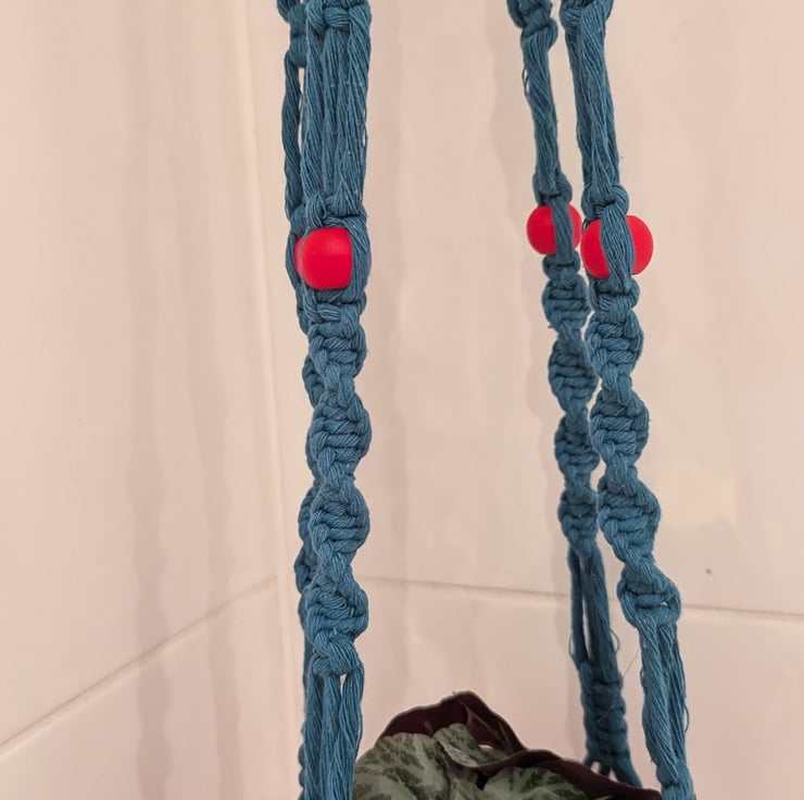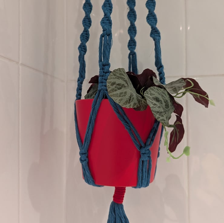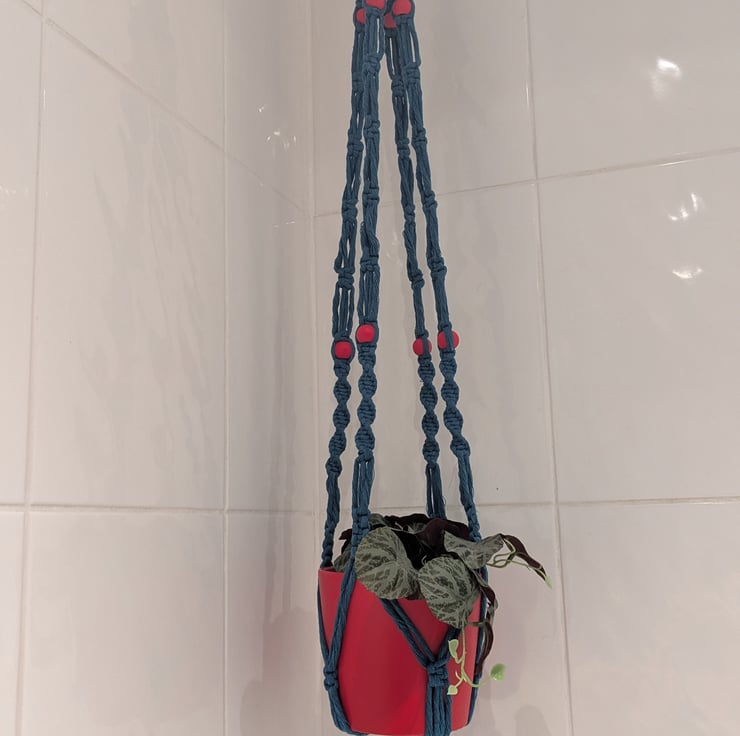 Bring the outside indoors with this vibrant macrame hanger which has been hand knotted from 100% cotton cord and hangs to an approximate height of 104 cm. I love this colour combo and it is sure to bring a splash of colour into your home.