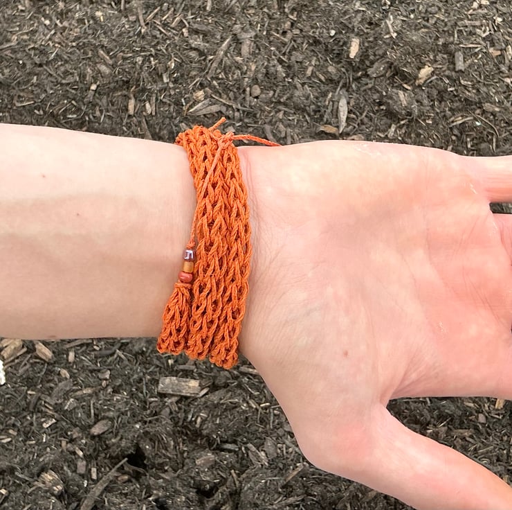 The tie ends are waxed with Beeswax, finished with glass seed beads and knots.
