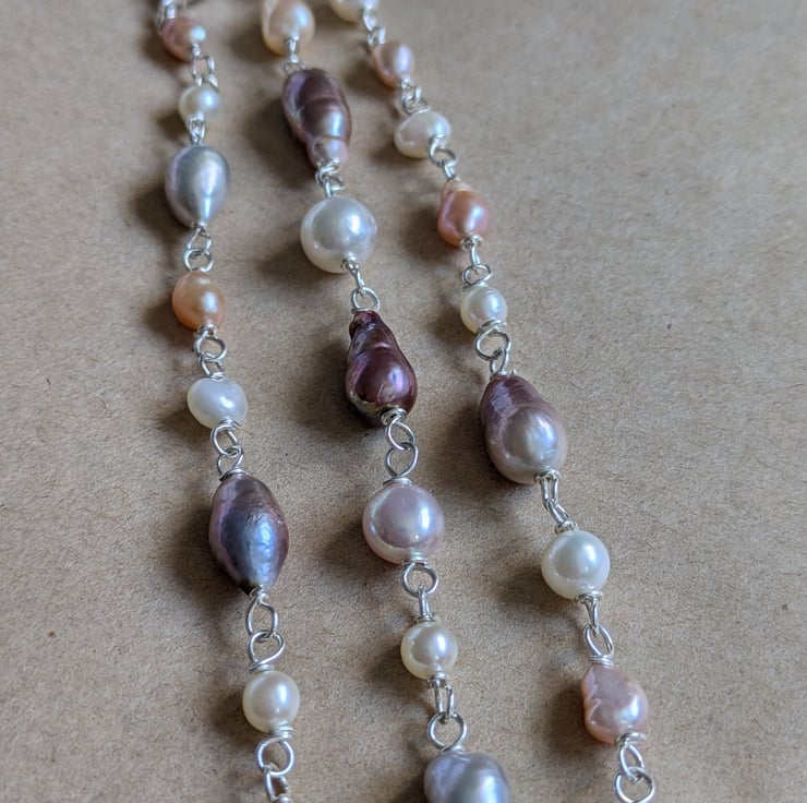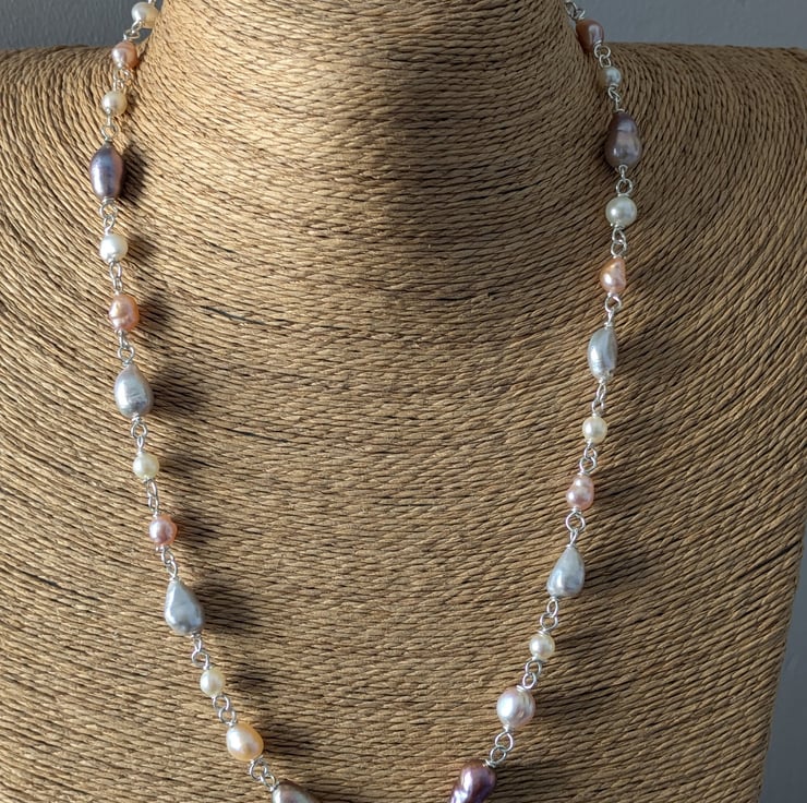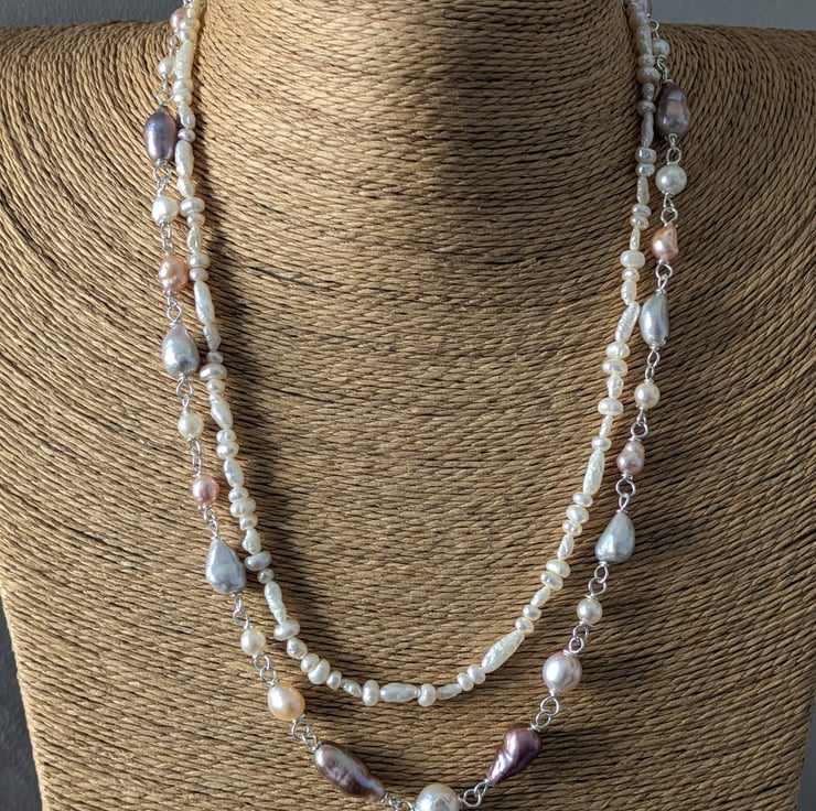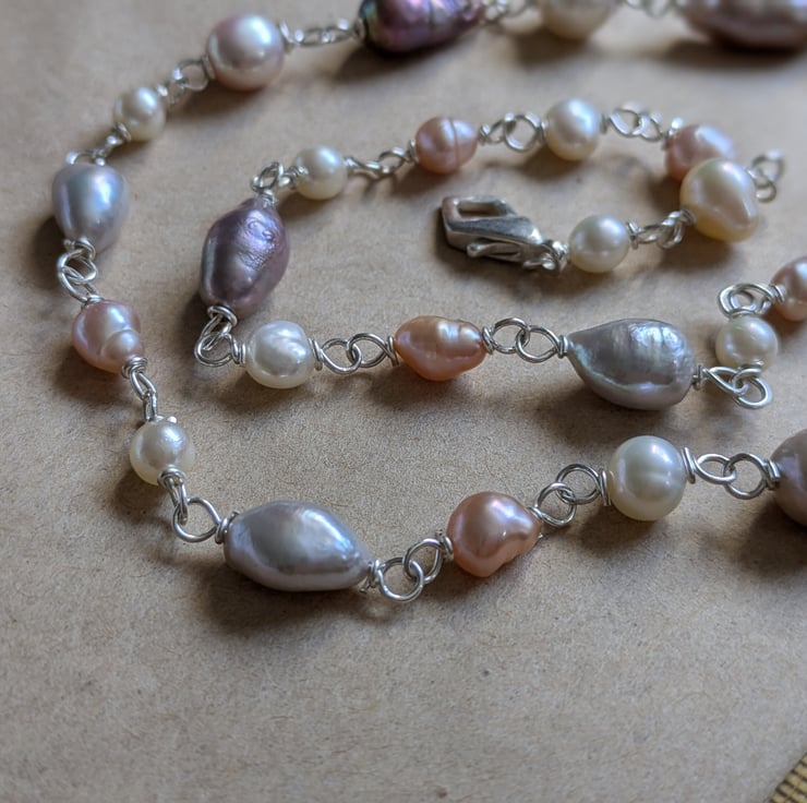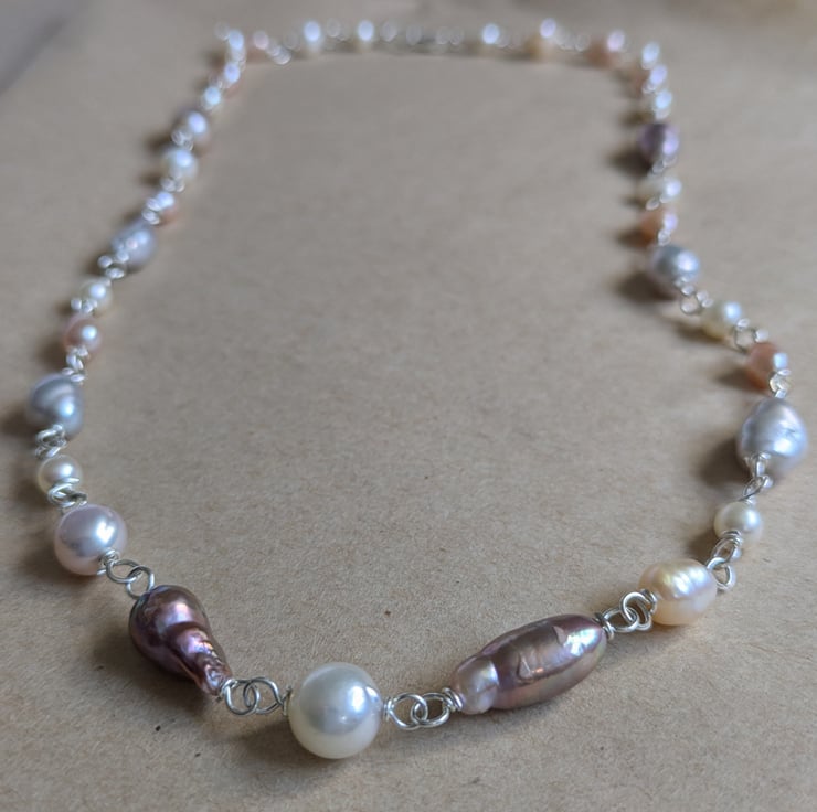 The Silver and Pearls Necklace - Wire wrapped mixed pearl necklace