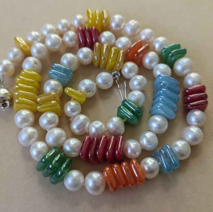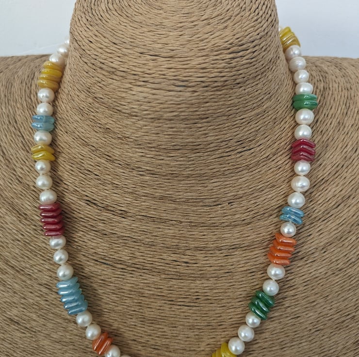 About the pearls: These pearls are vintage freshwater pearls. The particular ones chosen for this necklace are 'potato' shaped and produced in China from the 1990s onwards.