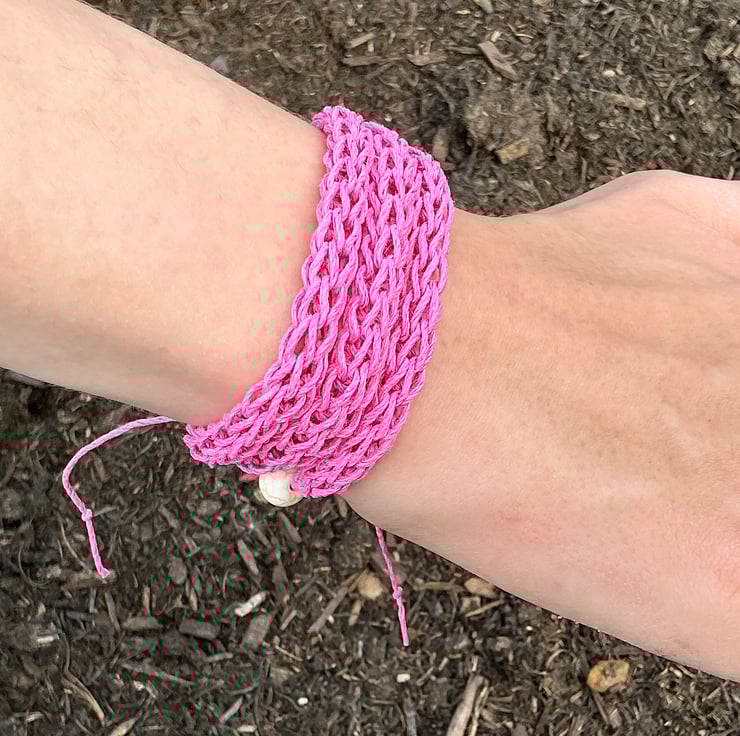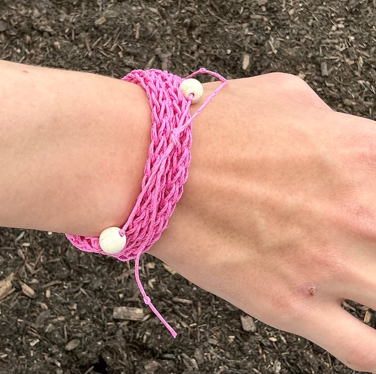 Hand Knitted Hemp Wrap Bracelet. Pink Bracelet.