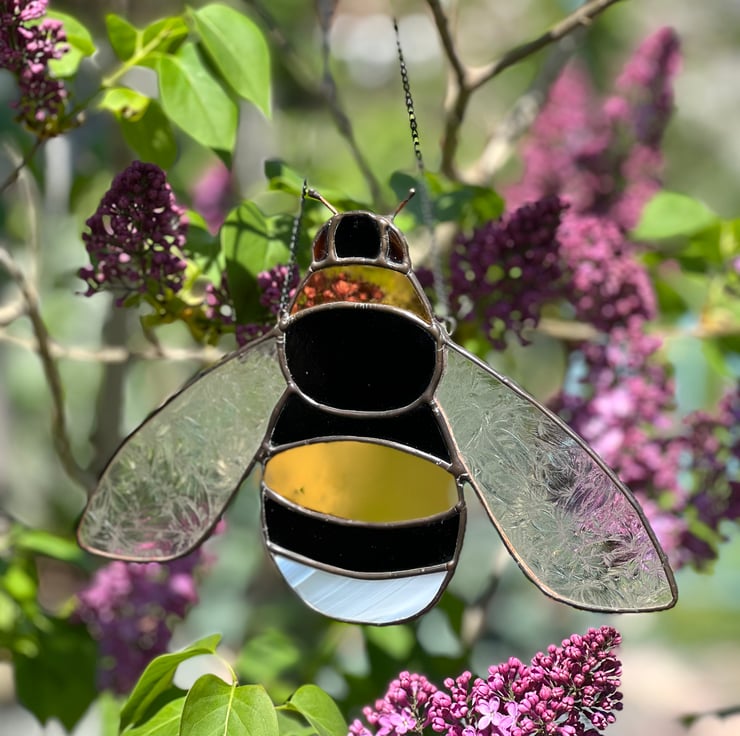 The stained glass bumblebee will be carefully parcelled in recycled and recyclable materials to ensure it arrives to its new home safely. All work is sent by Royal Mail second class parcel delivery. A faster delivery is available in my shop as a separate listing.
