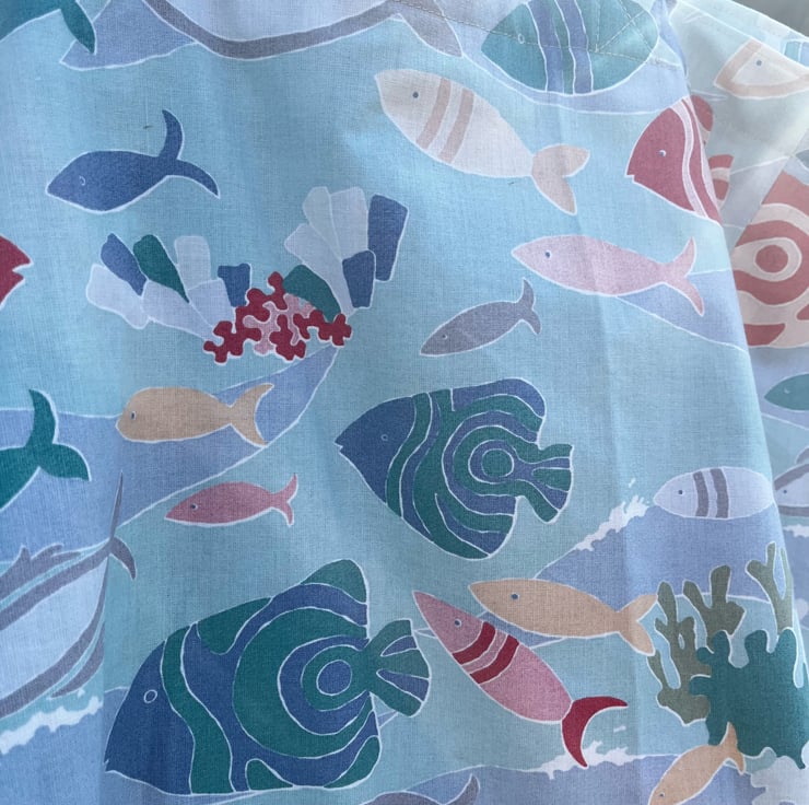This reclaimed Laura Ashley fabric was a pair of fishy curtains and has slightly washed out colours which may soften further with more washing.