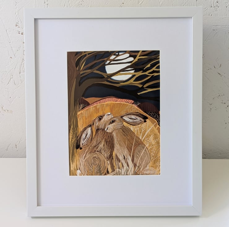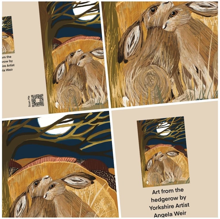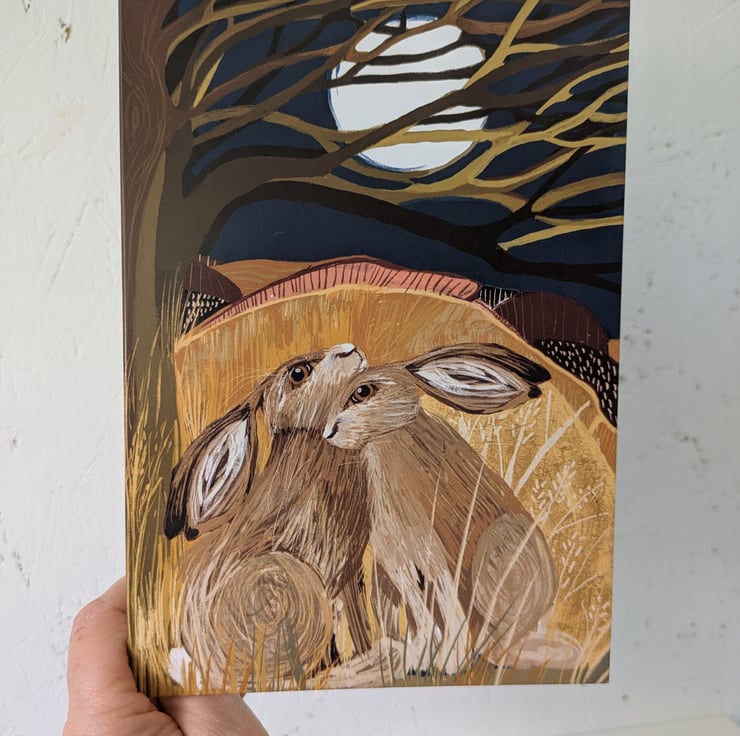 A beautiful illustration featuring a pair of hares under the moon. The card is blank inside making it perfect for all occasions or send with a frame as a gift.