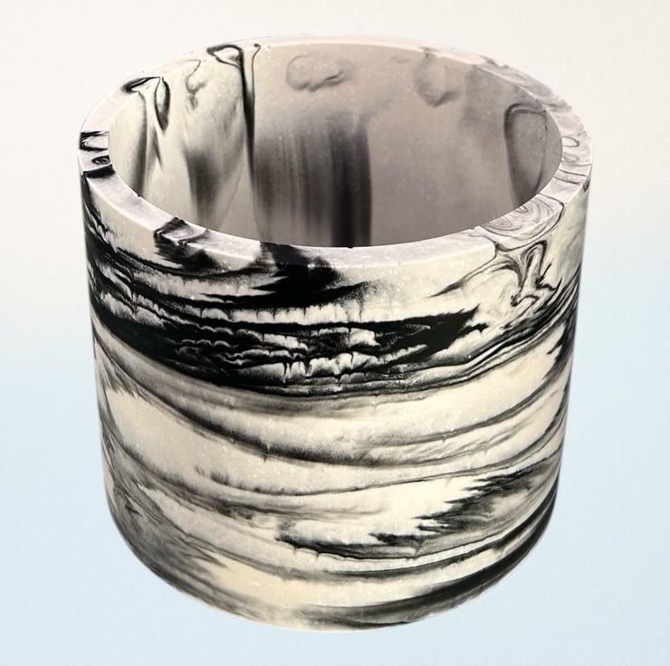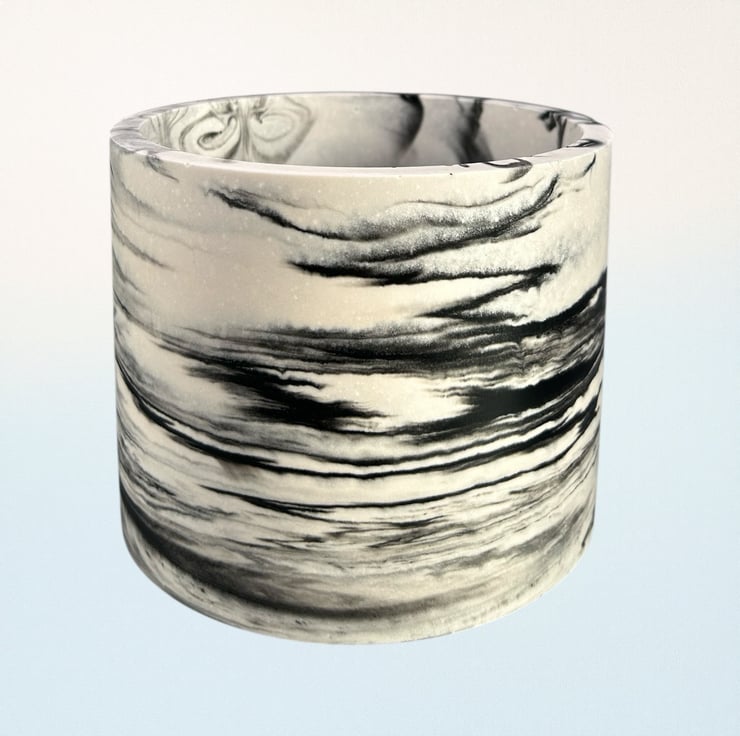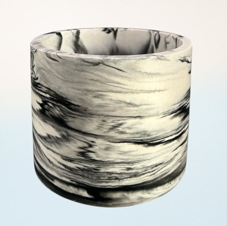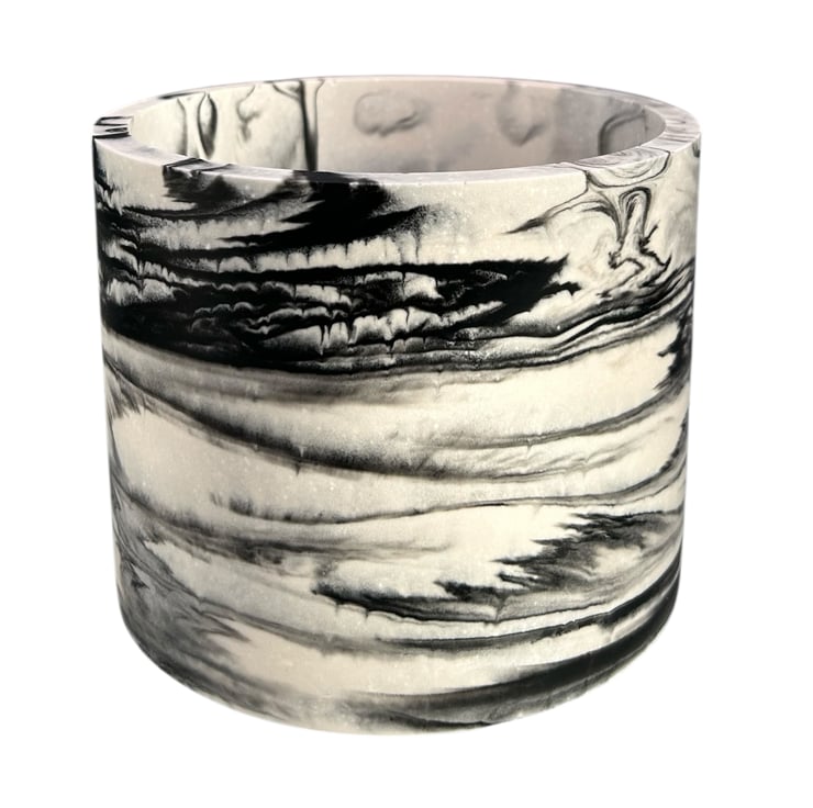This handmade, large round plant pot features a unique black marbled pattern on a white background. Crafted from Cassini, it has a smooth, durable finish that resembles marble, as well as making it both water and weather-resistant. Its neutral colours allow it to fit seamlessly into most interior design aesthetics, making it an ideal gift or a wonderful treat for yourself.