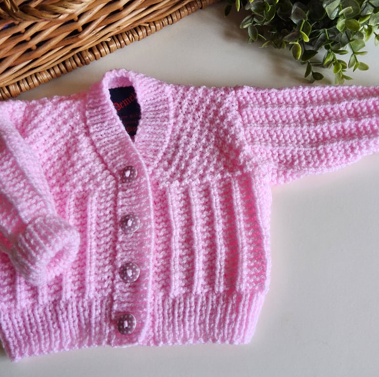 This cosy warm baby cardigan has been lovingly designed and hand crafted in Cornwall using quality branded premium machine washable acylic yarns. The colour is ideal to go with any baby girl's wardrobe collection.