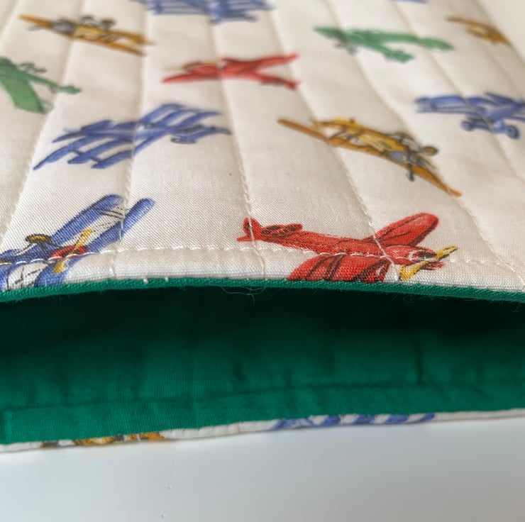 The sleeve is quilted with cream colour stitching and is lined with green colour cotton.