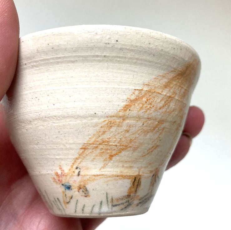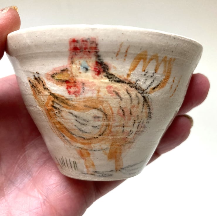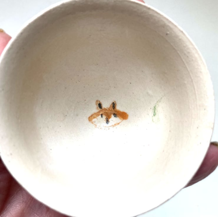 I have made several of these small cups, and decorated them with animals on the outside and a corresponding animal in the inside. I love illustrating animals and I love how these small bowls can be cups, trinkets bowls... And they can be used for so many different things from holding jewellery to serving chutney.