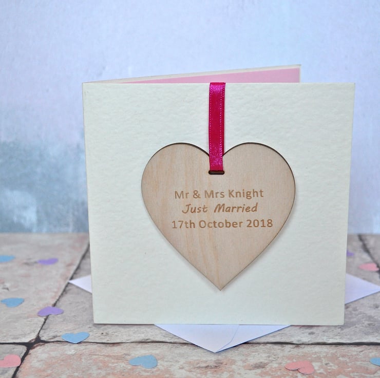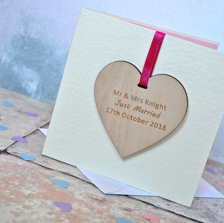 Each personalised wooden heart will vary slightly due to it being individually engraved and sanded by hand making these cards even more unique.