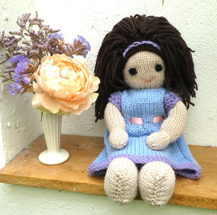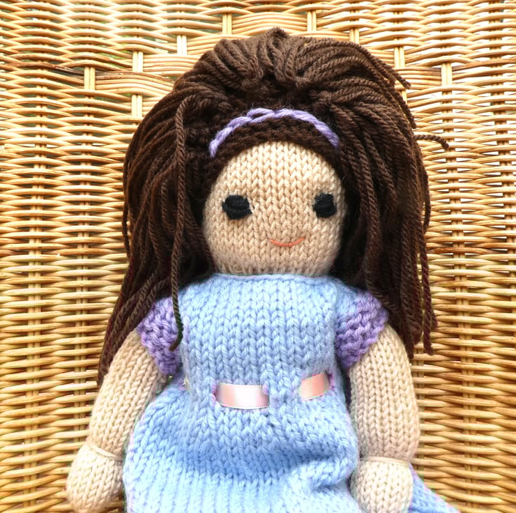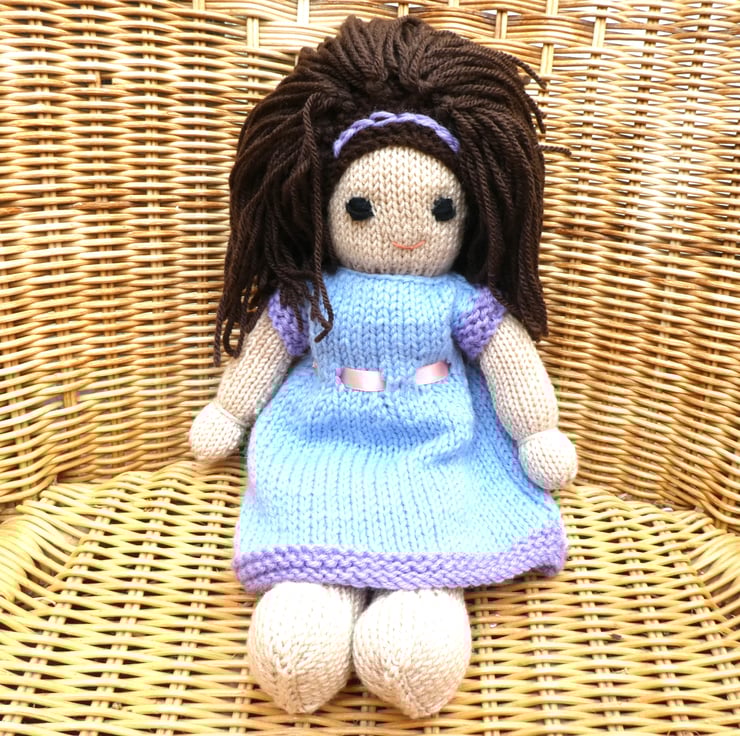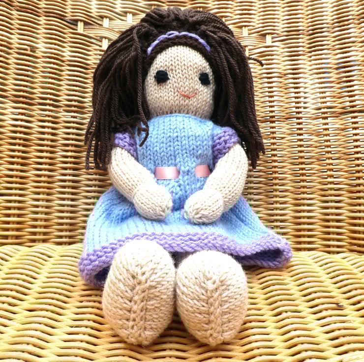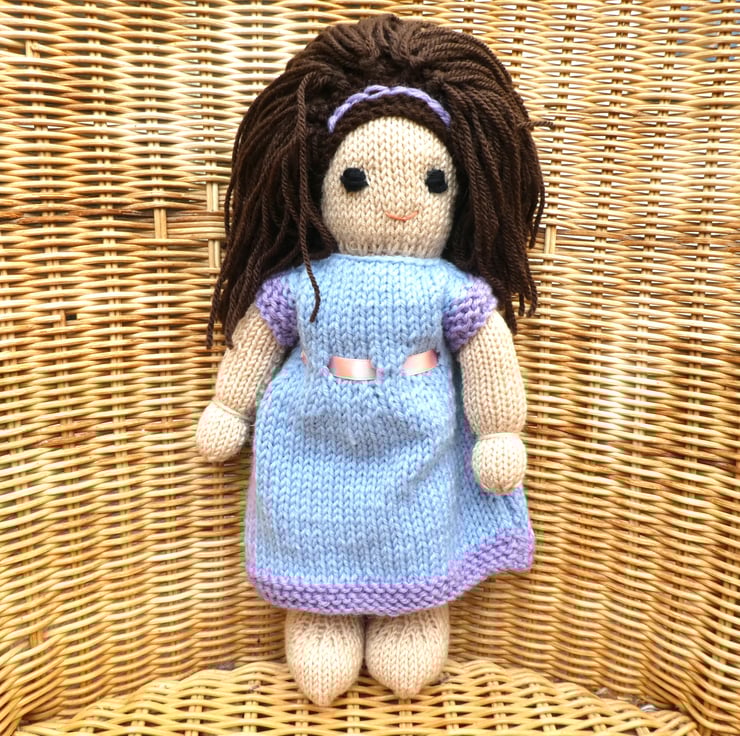 Doll. Hand Knitted Doll 12" handmade Doll with Brown Hair & Removable  Dress